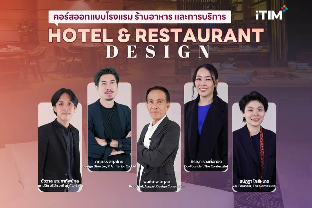 เรียนรู้การออกแบบโรงแรมและบริการยุคใหม่ที่ตอบโจทย์ความต้องการของนักท่องเที่ยวที่มองหาประสบการณ์ที่แตกต่างและไม่เหมือนใคร การออกแบบและตกแต่งร้านอาหารก็เป็นส่วนสำคัญในการสร้างความประทับใจให้กับลูกค้า ในขณะที่การผ่าแนวคิดและปรัชญาของการออกแบบโรงแรมจะช่วยยกระดับการบริการและการสร้างบรรยากาศที่เหมาะสมสำหรับทุกการเดินทาง